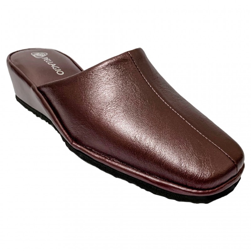 Элегантные домашние закрытые тапочки на удобной устойчивой танкетке бордового цвета. В этой модели подобрана оптимальная высота танкетки, в которой ногам комфортно на протяжении всего дня, в то же время она делает тапочки изысканными и их можно носить, как дома так и на работе. Для большей практичности подошву сделали из EVA, благодаря которой Вы сможете выйти на открытую террасу