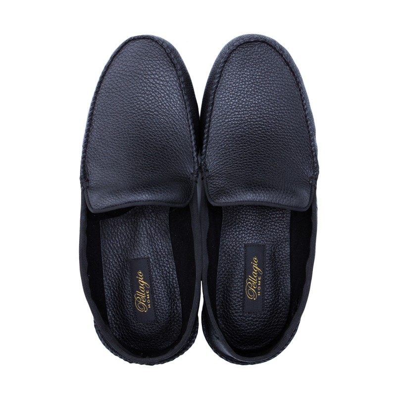 Домашние туфли черного цвета будут комфортной заменой любимым домашним тапочкам, а также смогут стать удобной альтернативой сменной обуви на работе. Материал мягкий, задник легко подогнуть, а чтобы на нем не осталось заломов, его выполнили, как вставку.