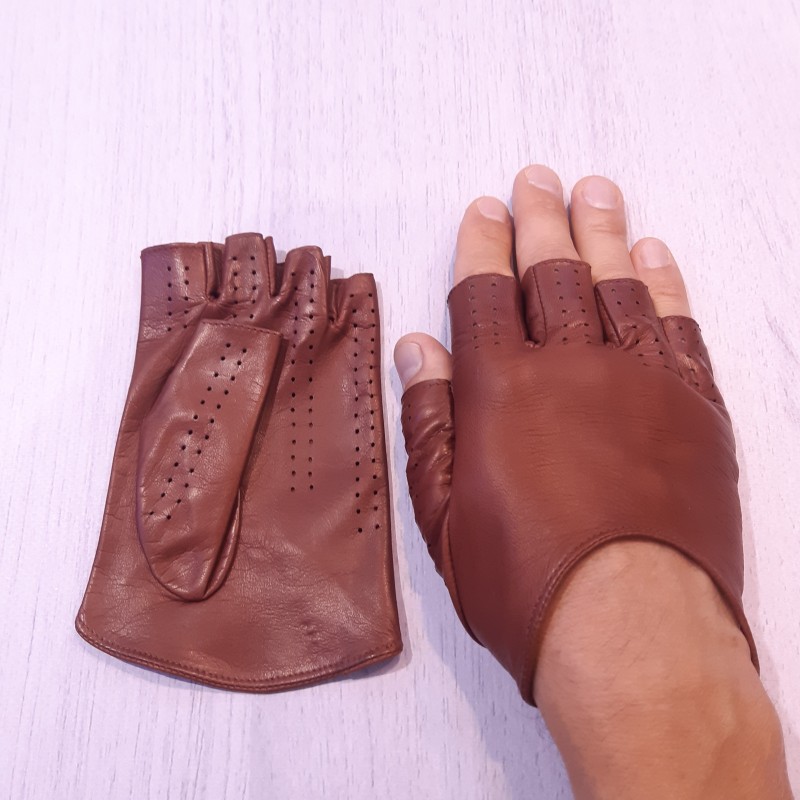 Чоловічі рукавички мітенки шкіряні GlovesUA мод.315 коньяк (без отворів)