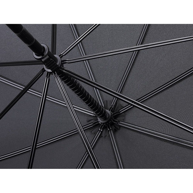 Разработчики этой модели не оставили ни одного шанса ветру, а будучи покрашенными в черный цвет, спицы не выделяются на черном куполе, тем самым и изнутри зонт смотрится монолитно великолепно.