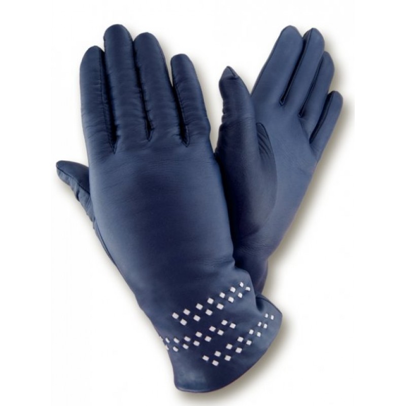 Женские кожаные перчатки GlovesUA мод.193 темно синий