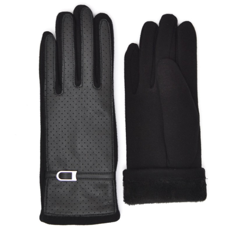 Трикотажные перчатки, верх которых выполнен из кожзаменителя,